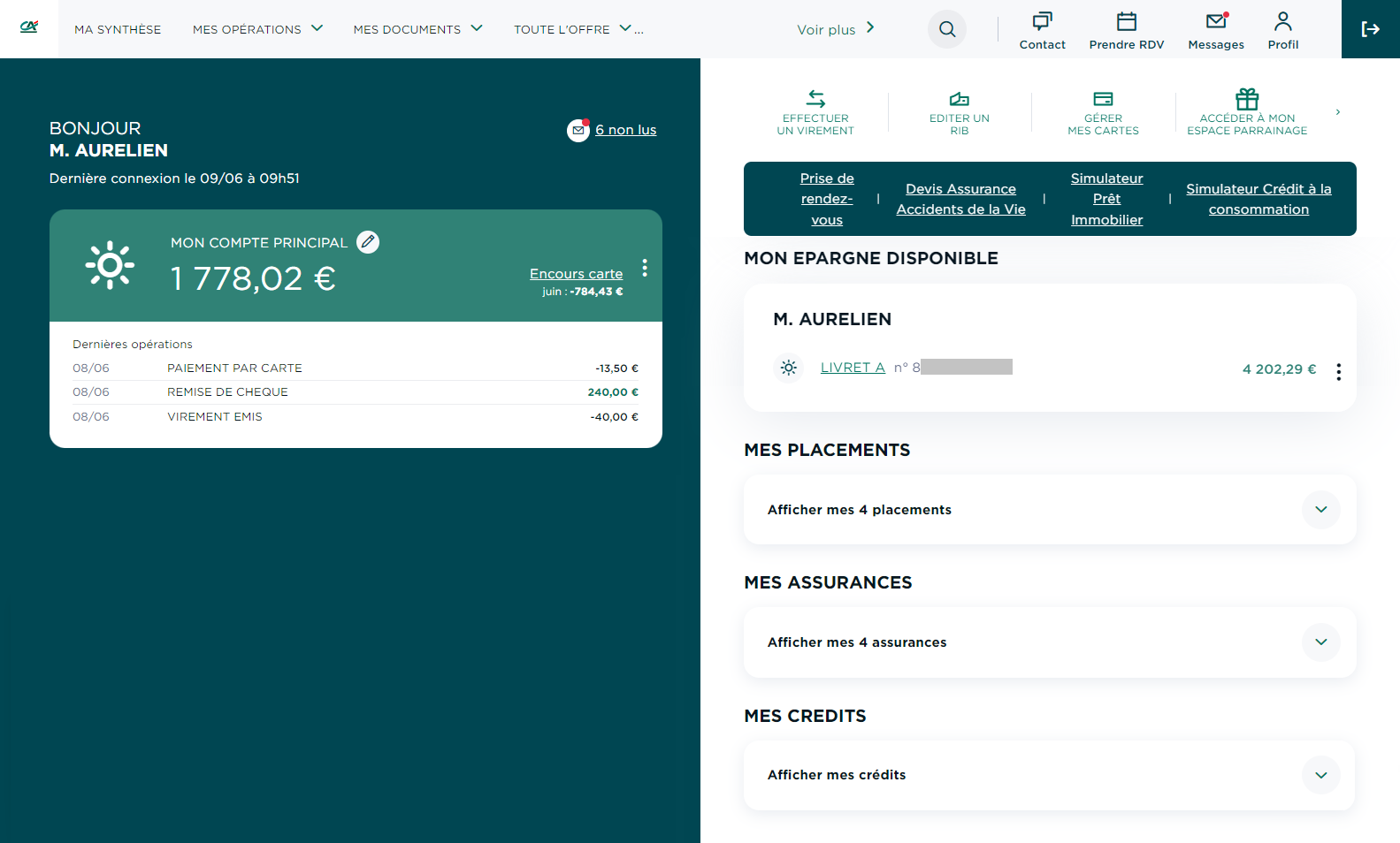 Connectez-vous à votre espace Crédit Agricole et cliquez sur l'icône "Prendre RDV" en haut à droite