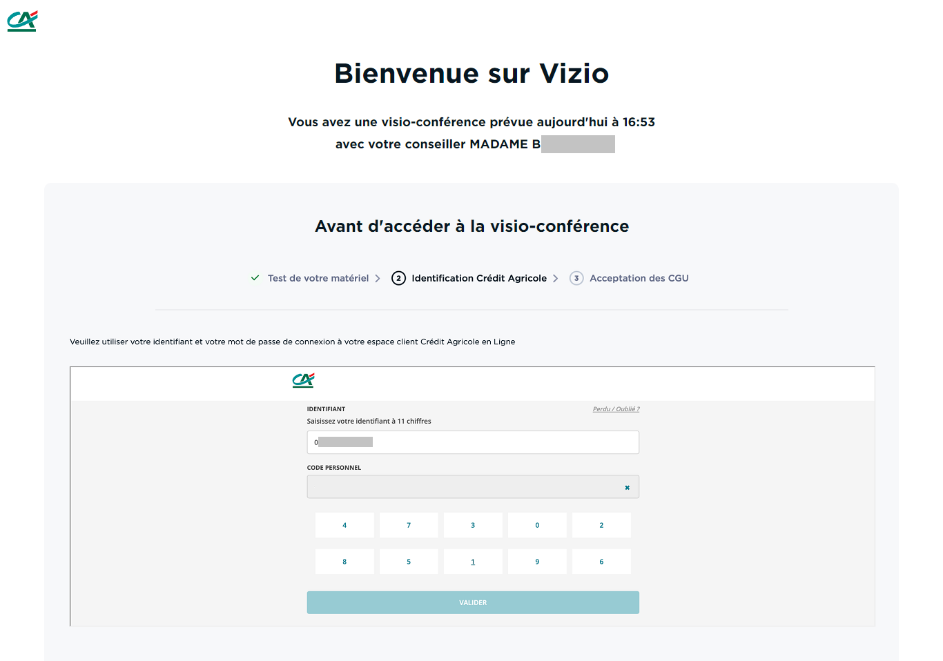 Saisissez votre identifiant et votre mot de passe que vous utilisez pour consulter vos comptes et cliquez sur "Valider"