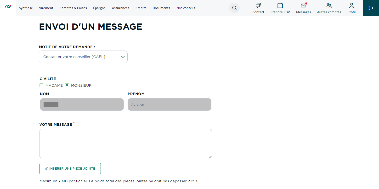 Rédigez votre message, insérez éventuellement une pièce jointe et suivez les étapes
