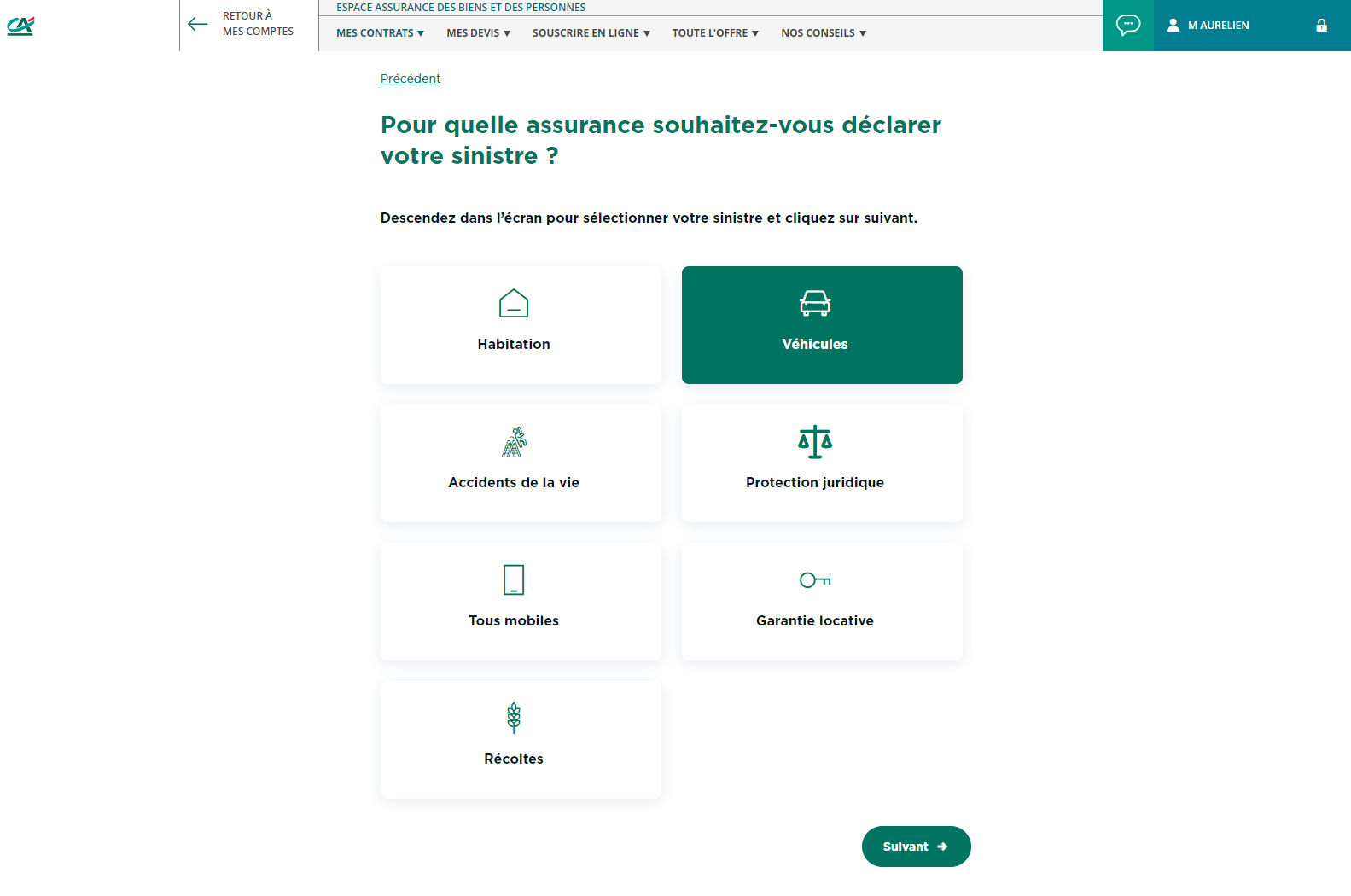 Cliquez sur "Suivant" en bas de la page et suivez toutes les étapes pour déclarer votre sinistre