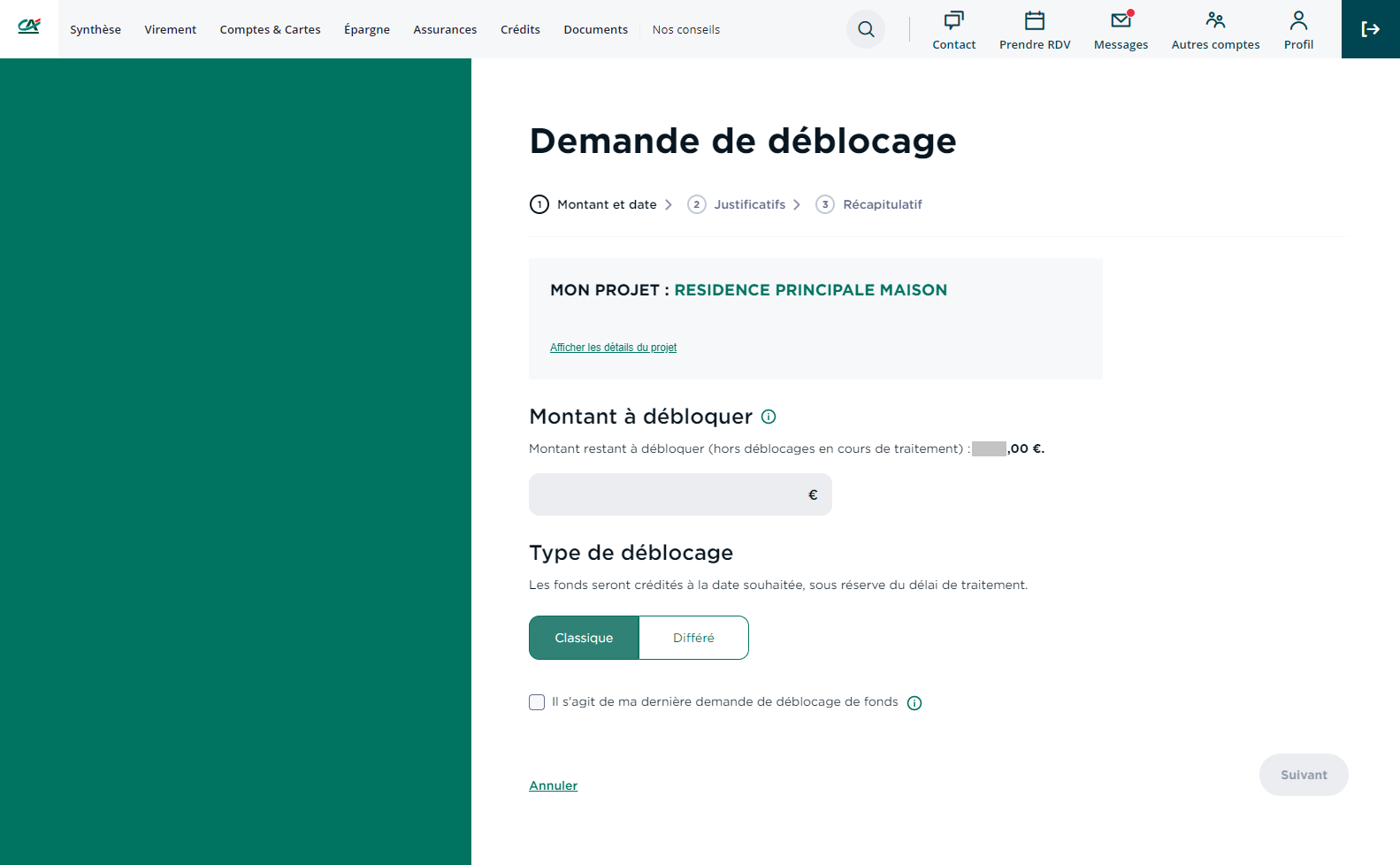 Complétez le formulaire (montant, type de déblocage)