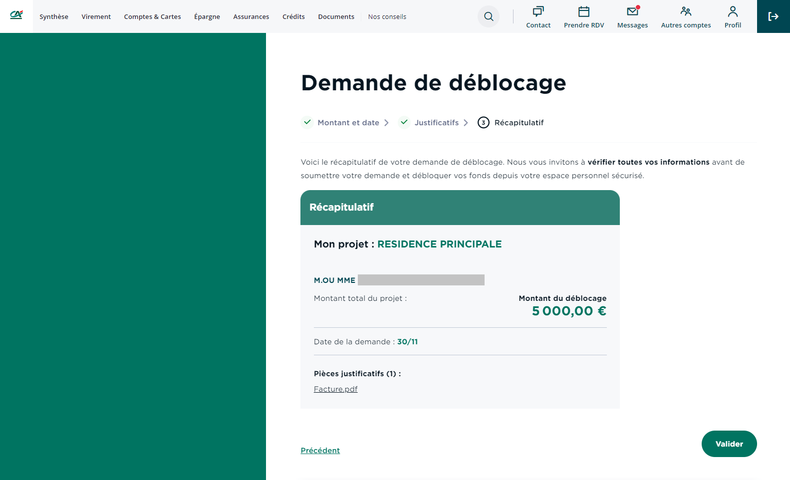 Vérifiez les informations de votre demande de déblocage puis cliquez sur "Valider" en bas de la page