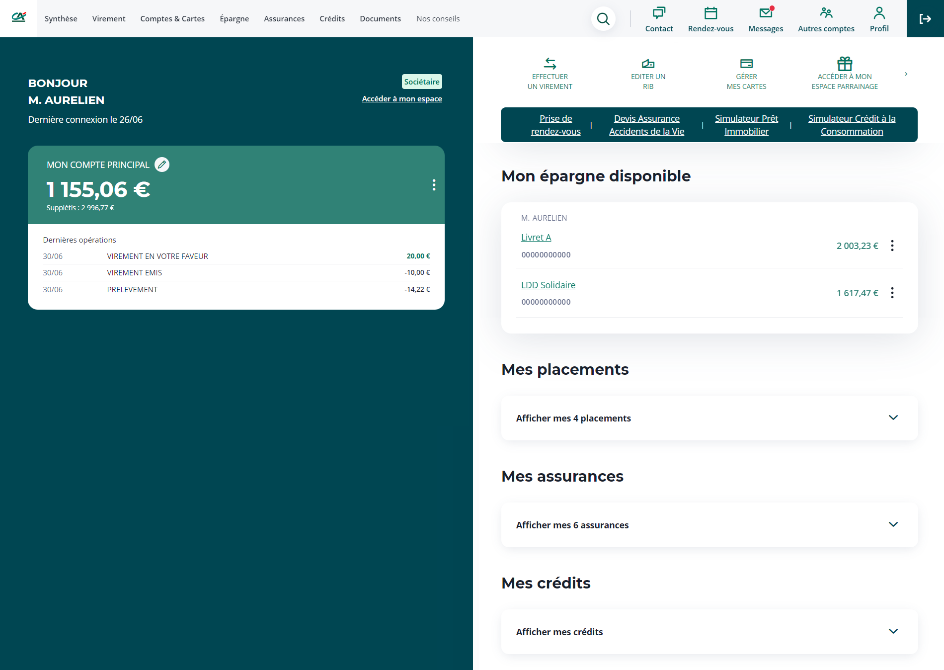 Connectez vous à votre espace Crédit Agricole et cliquez sur "Epargne" en haut de la page