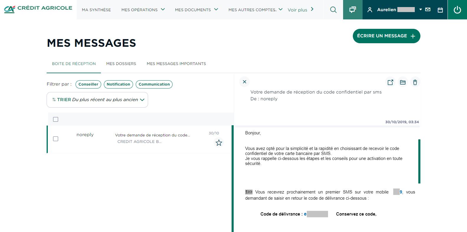 Retrouvez votre code délivrance à l'intérieur du message. Vous recevrez prochainement un SMS vous demandant de saisir ce code. Si vous ne répondez pas au SMS votre code secret sera adressé automatiquement par courrier