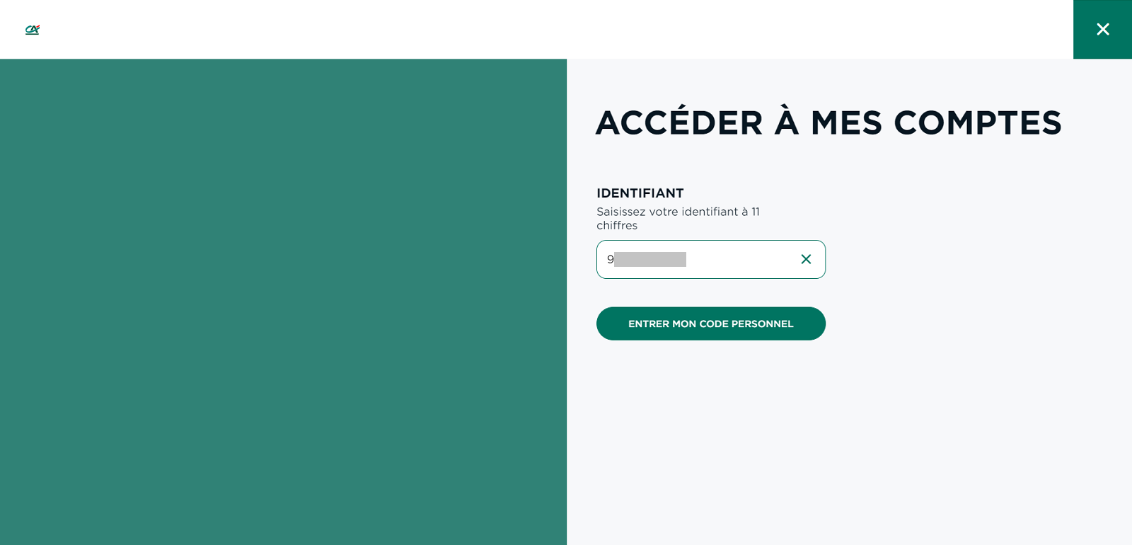 Saisissez l'identifiant concerné (particulier, professionnel ou délégué) et cliquez sur "Entrer mon code personnel"