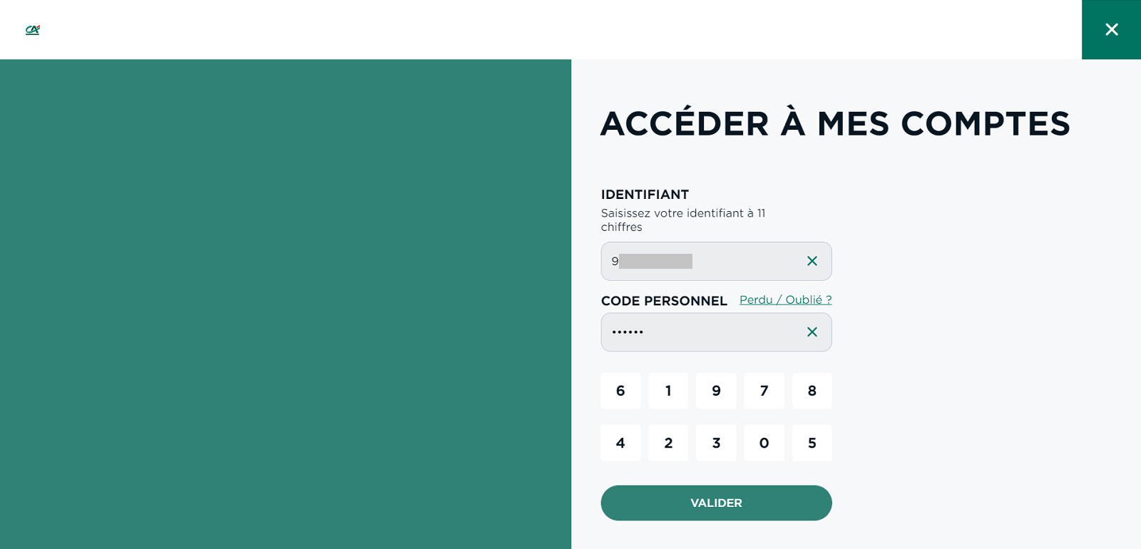 Saisissez votre code personnel et cliquez sur "Valider". Il est identique pour tous vos espaces